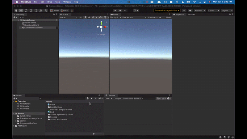 We will be adding four GameObjects to SampleScene