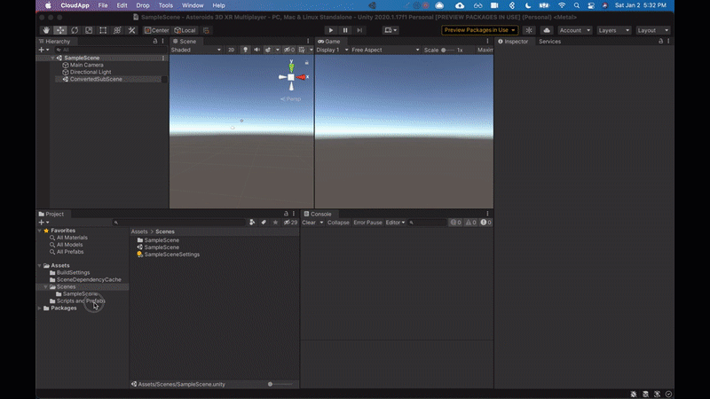Return to SampleScene, reimport ConvertedSubScene, and hit "play"